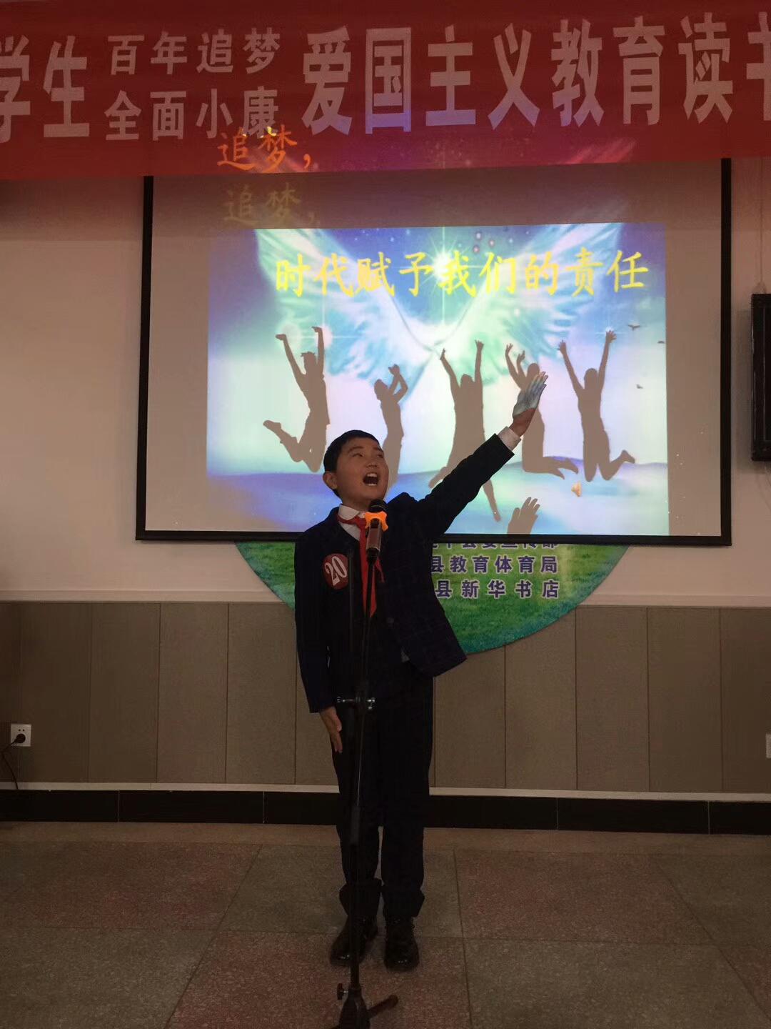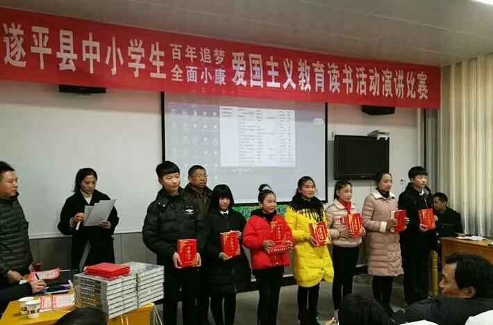 2017年12月29日上午,遂平县店与遂平县委宣传部、遂平县教育体育局联合举办了以“百年追梦 全面小康”为主题的爱国主义教育读书活动演讲比赛。来自全县中小学校的26支代表队共41名中小学生参加了比赛。