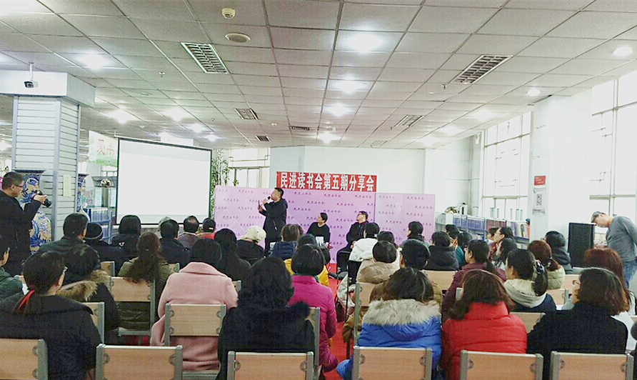 2018年1月6日下午2:00,安阳购书中心“爱书吧”开展的民进读书分享会座无虚席。本次活动的主题是解读严歌苓的小说《芳华》以及根据其改编的同名电影。活动由民进安阳红旗渠支部副主委赵健主持,民进安阳市委会秘书长原征和安阳师范学院文学院讲师、文学博士隋华臣担任主讲嘉宾。