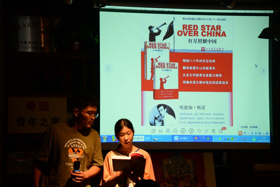 8月9日下午,延津县店暑期公益活动最美读书声《红星照耀中国》读书分享会在新华书店尚书房如期举行,阅读导师张宸主持本次活动。