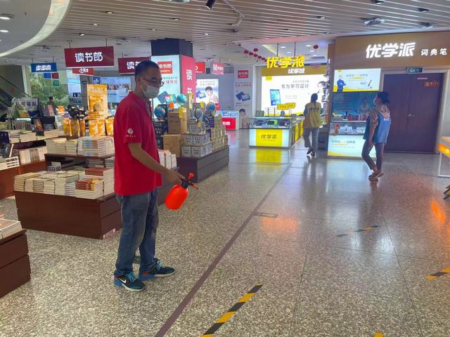 为做好新冠肺炎疫情防控工作,给广大读者创造一个安全健康的购书环境,几乎每一家书店都对店门口、咖啡座、办公室等重点公共区域进行了消毒。同时还会不定时地对书架、收银台、查阅台、楼梯扶手等读者经常接触的公共服务设施进行消毒,确保环境干净整洁。