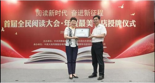 近日,首届全民阅读大会(河南)年度最美书店授牌仪式在郑州市新华书店郑州购书中心举行,郑州购书中心获颁“年度最美书店”奖牌。本次授牌仪式由河南省委宣传部、郑州市委宣传部主办,中原大地传媒股份有限公司、河南省新华书店发行集团有限公司承办。