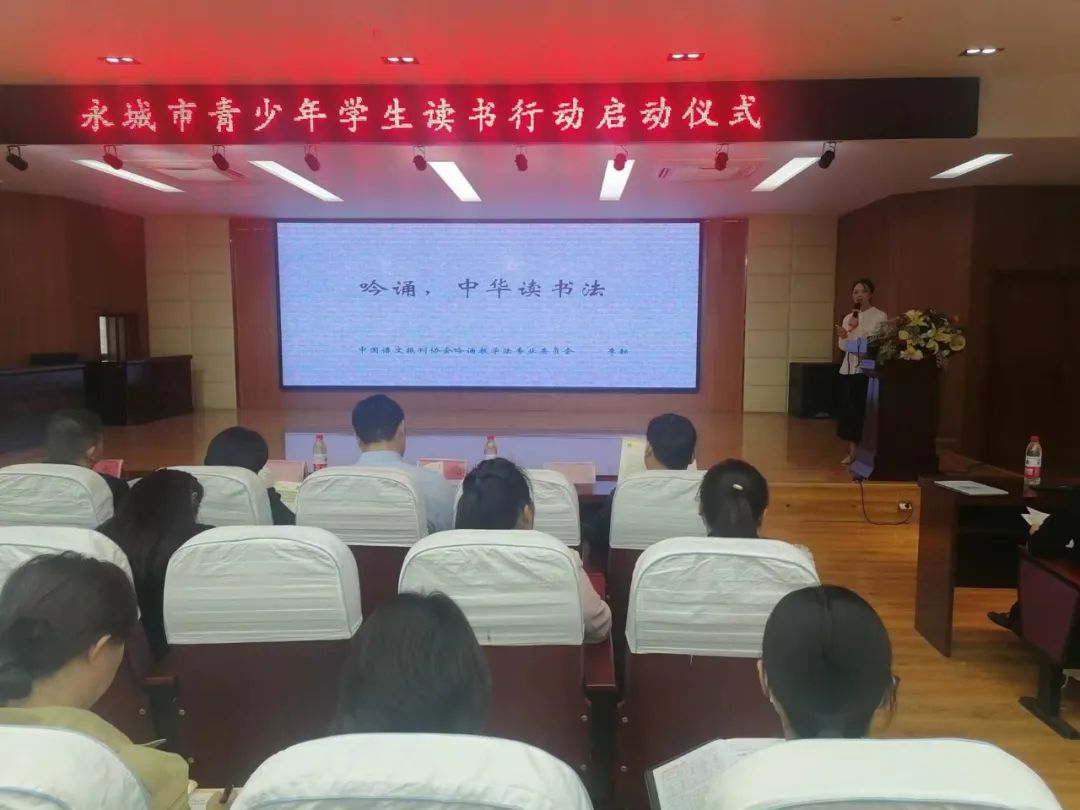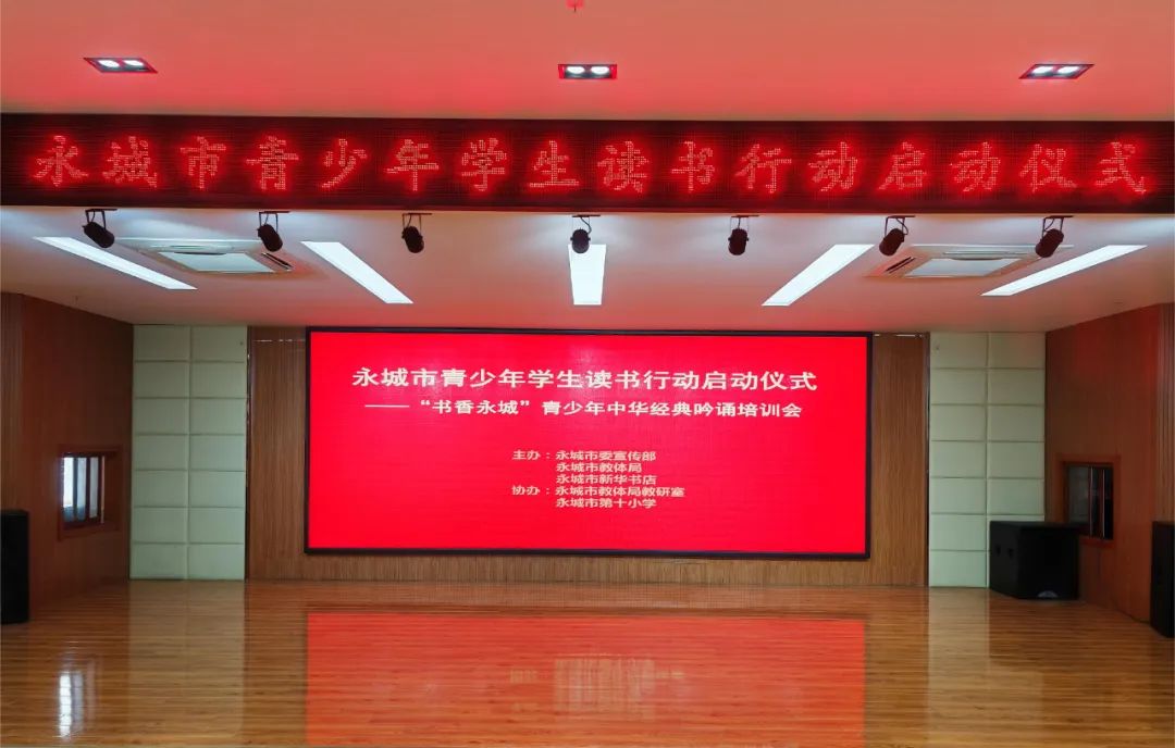 9月26日上午,在永城市第十小学报告厅成功举办了永城市青少年学生读书行动启动仪式暨“书香永城”青少年中华经典吟诵培训会,本次活动由永城市委宣传部、永城市教育体育局、永城市新华书店联合举办,永城市教体局教研室,永城市第十小学协办。本次活动是按市委要求在全市开展“迎国庆、鼓士气、助发展”的系列宣传活动之一。