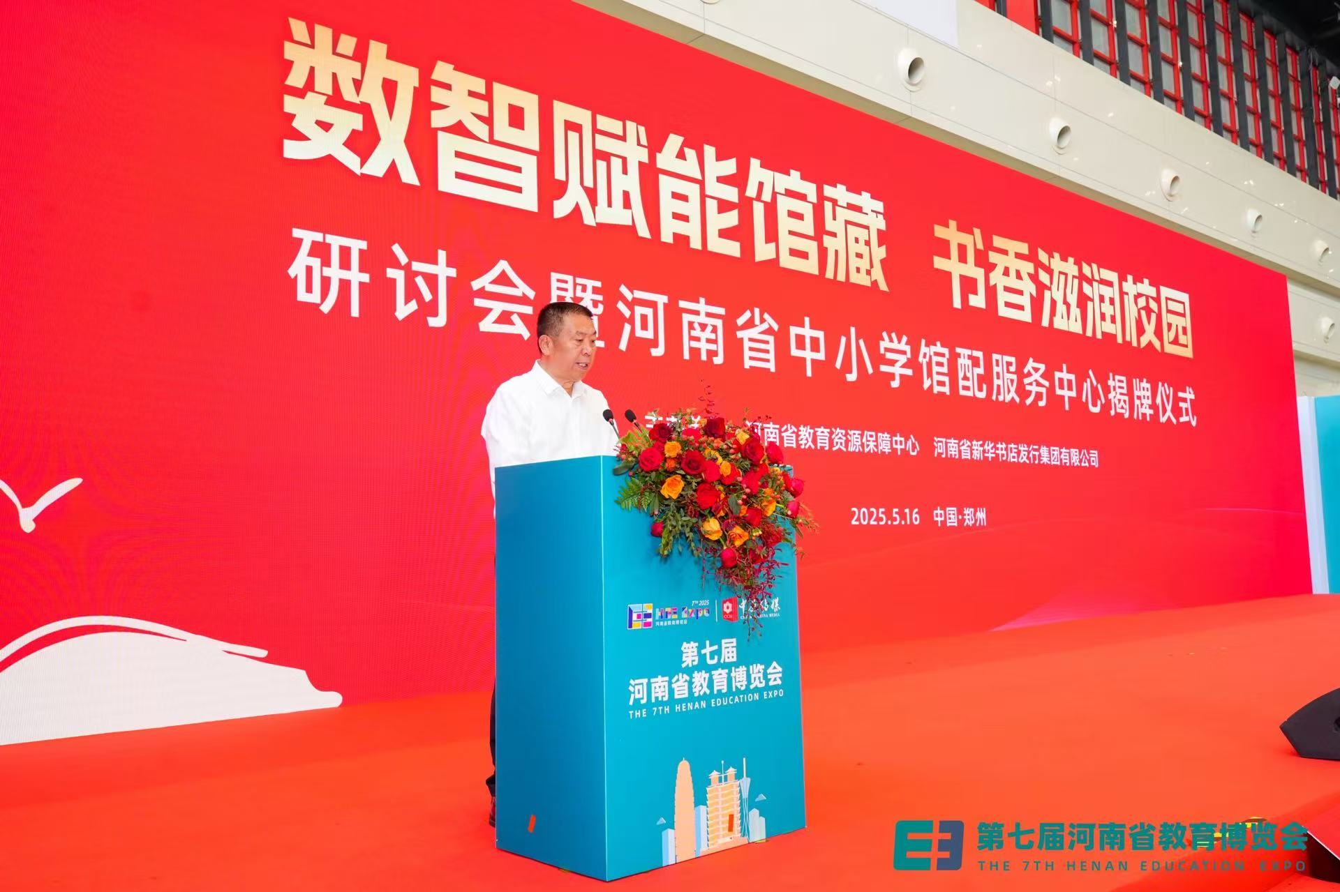 5月16日,第七届河南省教育博览会开幕当天,“数智赋能馆藏·书香滋润校园”研讨会暨河南省中小学馆配服务中心揭牌仪式在郑州举行。省教育资源保障中心主任孙家栋、省新华书店发行集团相关领导出席活动并讲话。