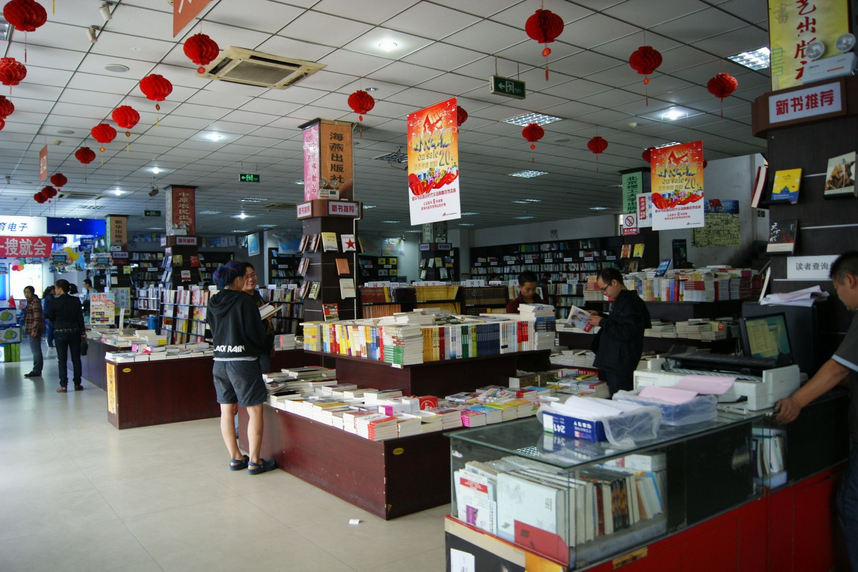 9月30日“中秋情意浓,购书礼品送”在中秋节当天购书满一定金额的读者均赠送精美礼品。与出版社合作举行 “真情回馈,买一送一”活动,读者凡购买带有特定LOG的图书一本均送精美卡包一个。以“回馈读者厚爱,劲掀特价风暴”为主题,书店优选社科、历史、文学、生活、四个板块千种图书在卖场进行集中码放和码堆码放,读者购书可以享受到5-8折优惠。以及 “旅途风情,一览无余”自助旅游主题书展;“翻阅之间,爱上生活”家庭生活图书展;“金色童年,畅阅无限”儿童读物主题书展等不同主题的图书展销活动。据悉,9月30日-10月7日购书中心销售各类图书码洋比去年同期增长208%。 |
