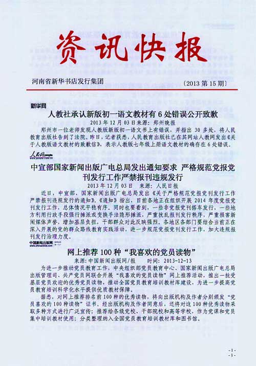 来源:河南省新华书店发行集团有限公司  作者:河南省新华书店发行集团有限公司  发布时间:2013/12/13 16:19:39  阅读次数:7681