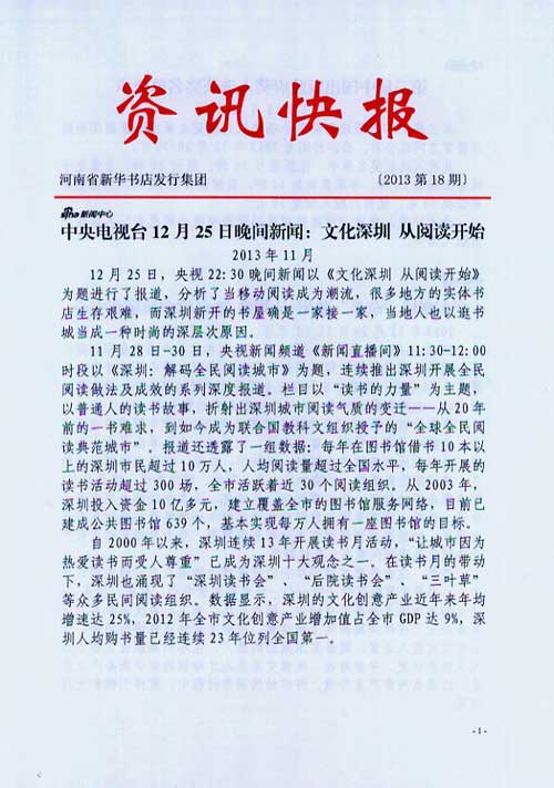 来源:河南省新华书店发行集团有限公司  作者:河南省新华书店发行集团有限公司  发布时间:2013/12/26 12:09:33  阅读次数:8071